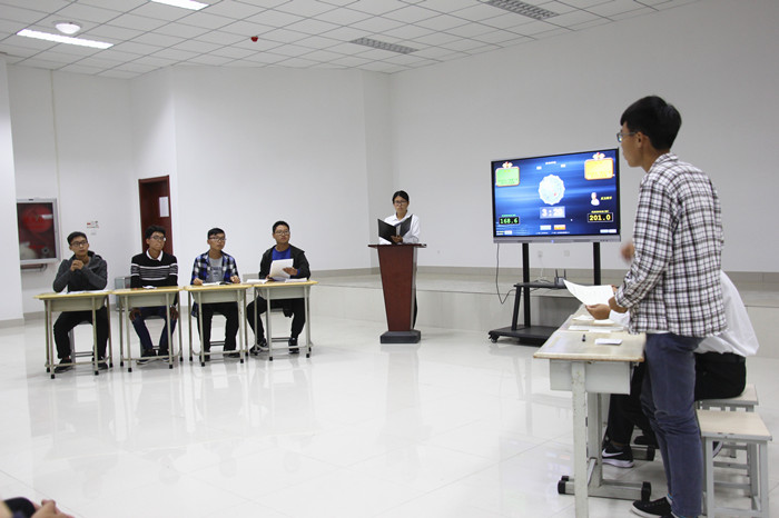 2017年10月10日晚上19:00。第二十届机电学院辩论赛复活赛在机电大楼530会场举行。复活赛由往届优秀辩手杨晨朝、刘桂江、张志远、彭禹、王雪杨担任评委,传播学院的优秀辩手王凯丽、信息学院优秀辩手陈海明,机电学院学生会各部门副部长列席此次比赛的嘉宾。